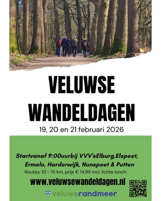 Maar liefst 142 wandelaars verkenden tijdens de editie van 2025 de omgeving Elburg tijdens de Veluwse Wandeldagen. Ook nu verrassen we je weer met een mooie route, allerlei lekkers voor onderweg en een lunch na afloop van de route. Je start je wandeling tussen 09:00 en 12:00 uur.