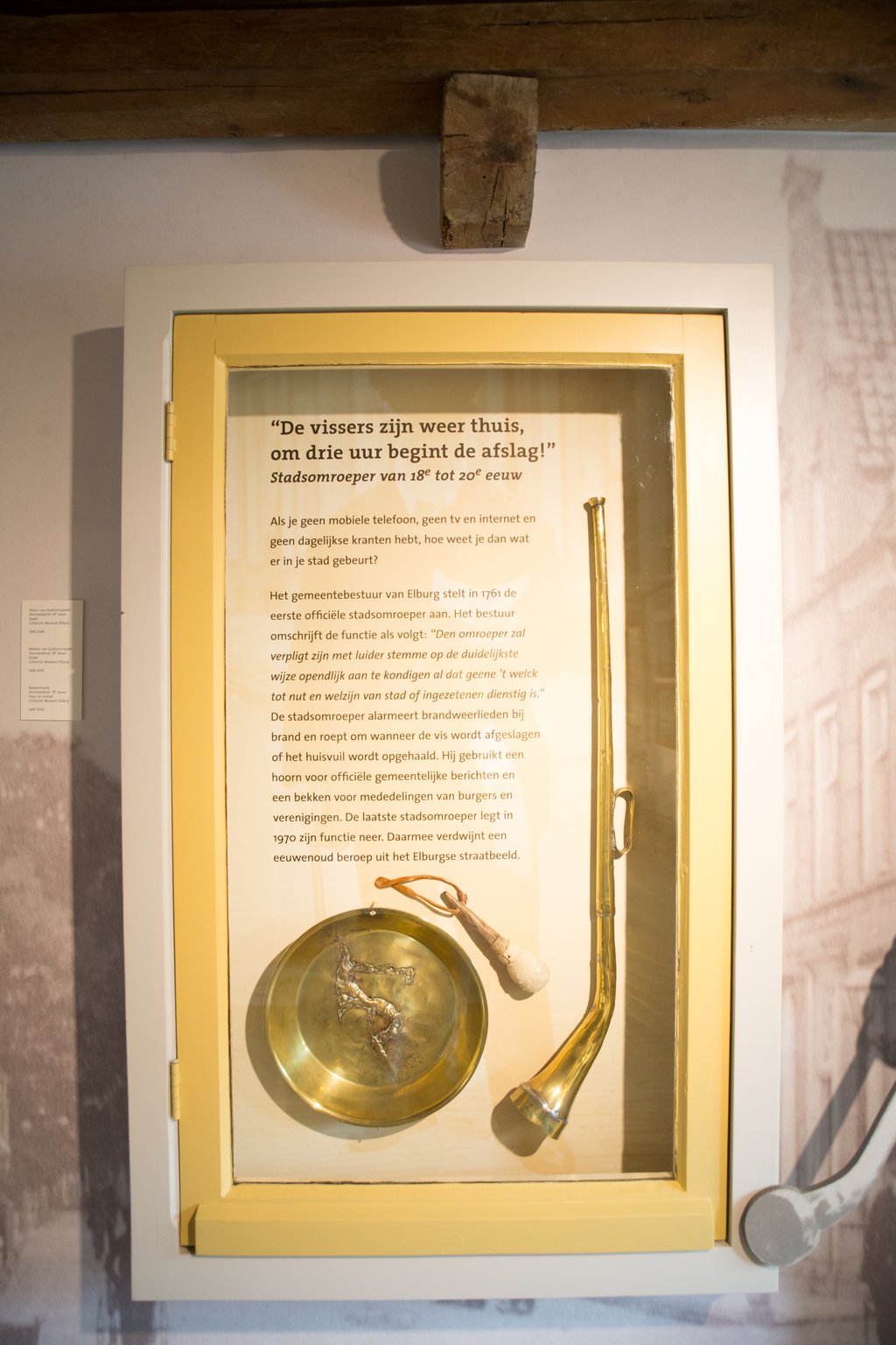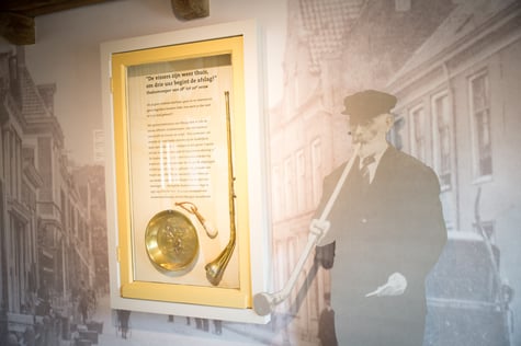 In ons museum liggen de oude attributen die de stadsomroeper gebruikte, zoals de bekken en de hoorn. Deze attributen komen vermoedelijk uit de 18e eeuw. U kunt dit vinden in ons museum op de zaal –Stad vol Bedrijvigheid-.