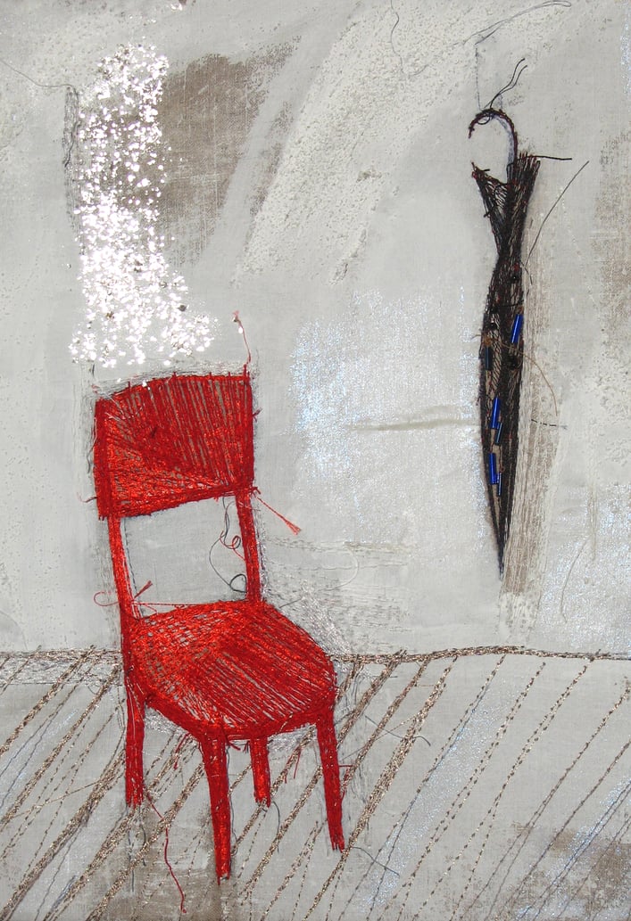 Als kunstenaar laat Daniella zich leiden door de lijn. De ene keer is de lijn in inkt, de andere keer is het een streep, met fijn draad geborduurd. De textuur van de verschillende materialen waarderen en optimaal te benutten is voor haar essentieel in het werkproces. Het is prachtig hoe het gebruik van zijde, linnen, verf, draad, kralen, de mogelijkheid in expressie geven en mede om de aandacht die ze wil leggen op de zintuigelijke ervaringen. Als kijker zie je silhouetten, omlijningen van huid die wel of niet geaccentueerd zijn met delicate stoffen, glanzende draden en glimmende kralen.