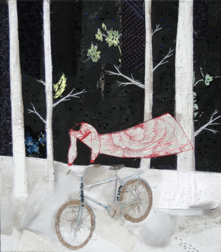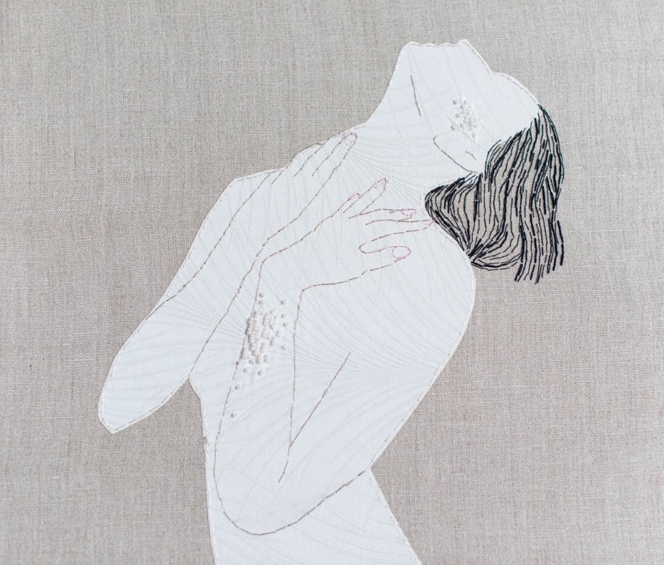 Als kunstenaar laat Daniella zich leiden door de lijn. De ene keer is de lijn in inkt, de andere keer is het een streep, met fijn draad geborduurd. De textuur van de verschillende materialen waarderen en optimaal te benutten is voor haar essentieel in het werkproces. Het is prachtig hoe het gebruik van zijde, linnen, verf, draad, kralen, de mogelijkheid in expressie geven en mede om de aandacht die ze wil leggen op de zintuigelijke ervaringen. Als kijker zie je silhouetten, omlijningen van huid die wel of niet geaccentueerd zijn met delicate stoffen, glanzende draden en glimmende kralen.