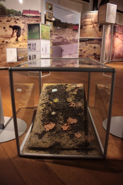 De expositie die daar ontstond was echter te groot voor de ruimten in de Sjoel. De Sjoel heeft de expositie ‘Het geheugen van de grond’ vervolgens bij Museum Elburg ondergebracht en plaatste in het eigen museum in diezelfde periode een leententoonstelling van kamp Westerbork ‘Er reed een trein naar Sobibor’. Gezien het statische karakter van de Poolse tentoonstelling die in Museum Elburg geplaatst werd, is directeur Anne-Marie van Hout, na het ontslag van Susanne Wolf ook verantwoordelijk voor het maken van tentoonstellingen, vervolgens op zoek gegaan naar een aanvulling. Die aanvulling werd gevonden in het werk van Jenna Tas. Jenna Tas, kind van een joodse vader, heeft gedurende haar carrière vaak teruggegrepen op het thema ’herinneren’. De gruwelijkheden die haar familieleden zijn aangedaan spelen vaak een rol in haar werk. Als aanvulling op ’Het geheugen van grond’ is gekozen voor een aantal werken en installaties die dat herinneren op indrukwekkende wijze vormgeven.