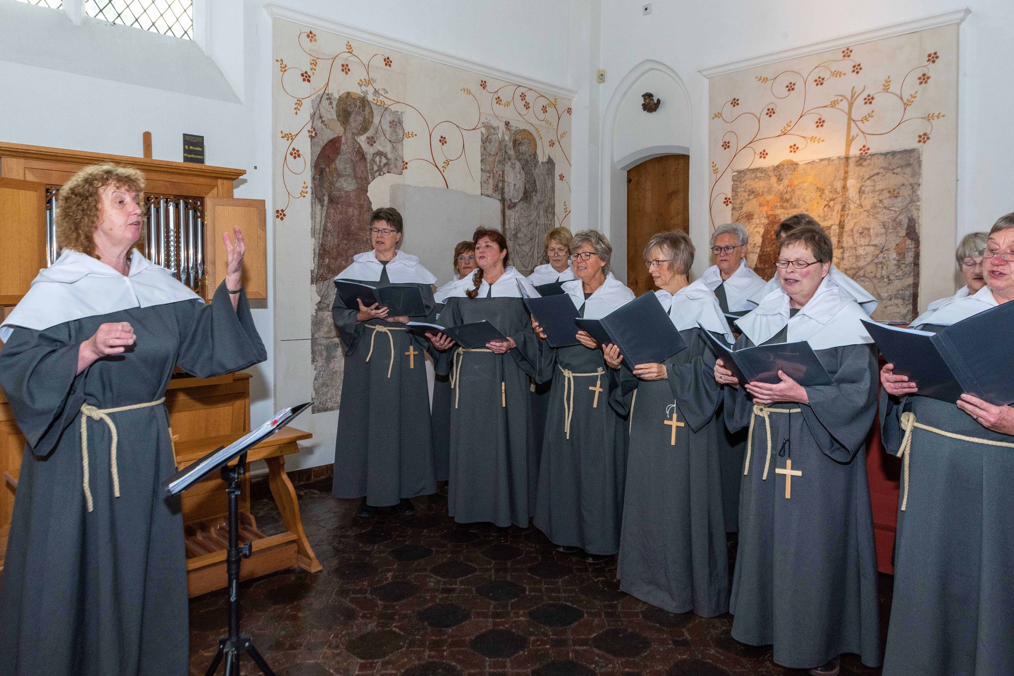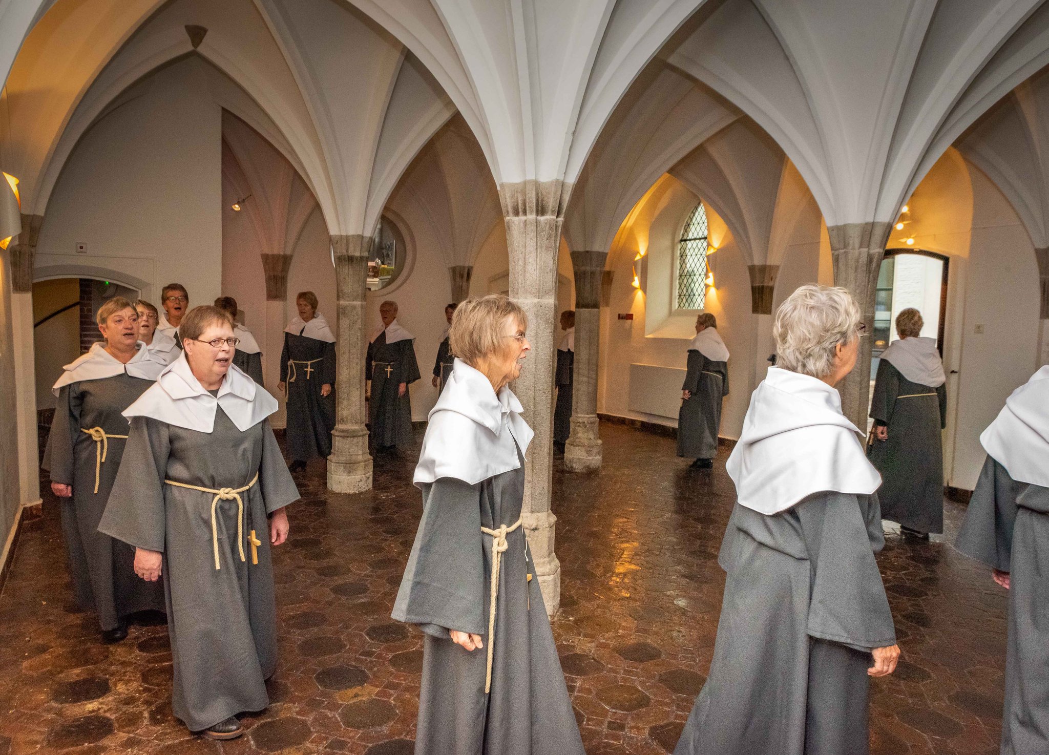 Het Susterenkoor "St Agnes", gekleed in habijten, zingt een liederen passend bij de sfeer van de kloosterkapel en Winter in de Vesting.