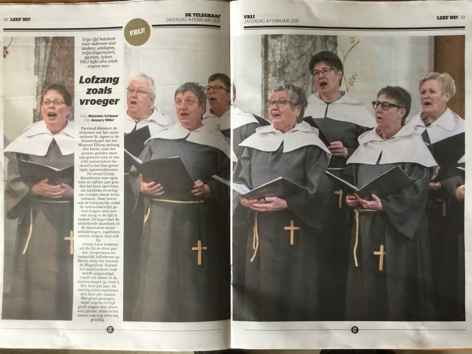 Ook tijdens Winter in de Vesting 2024 zal het Susterenkoor St.- Agnes op zaterdagmiddag 14 december optreden in de Kloosterkapel. De toegang is dan gratis. Het optreden zal bestaan uit een aantal miniconcerten.